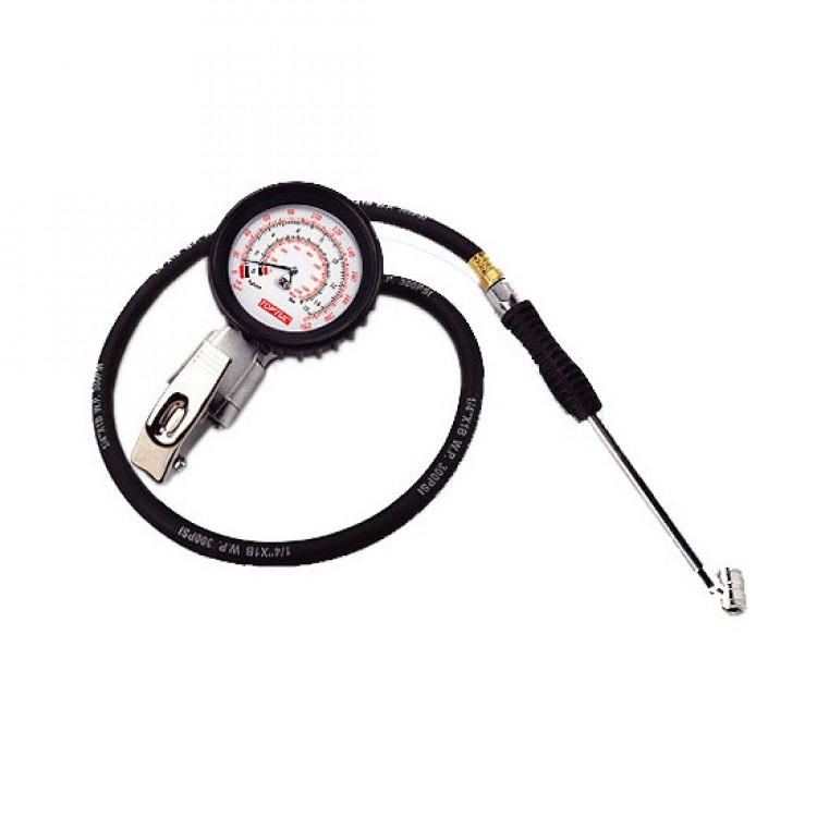 TOPTUL Pistolet do nape³niania kó³ tzw. bliniaków, zakres 0-15 bar, na z³¹cze 1/4", z gumowym wê¿em i wskanikiem