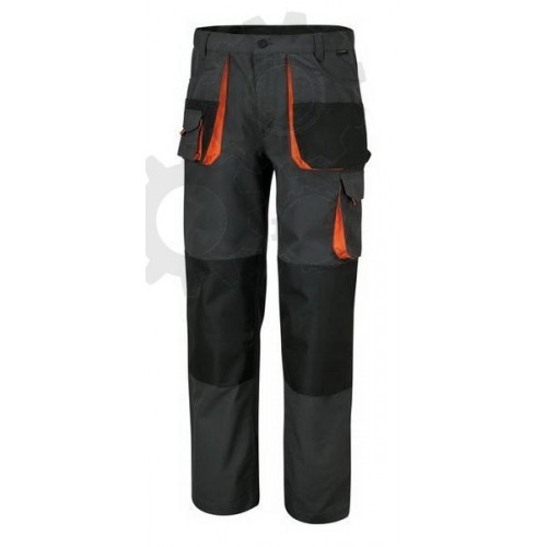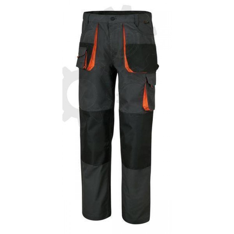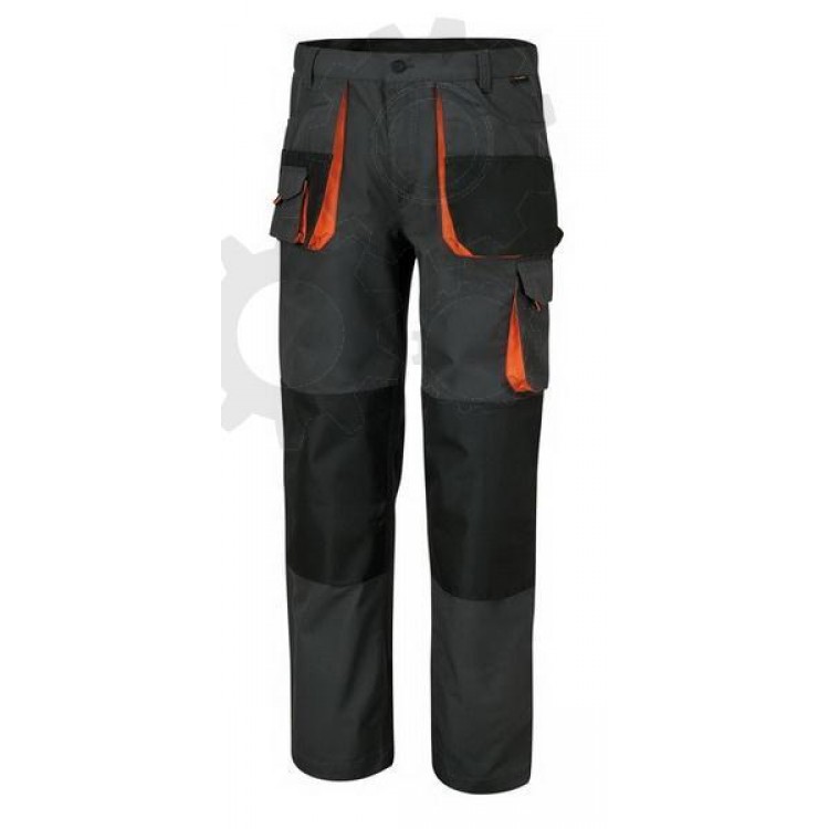 BETA Spodnie robocze, p³ótno T/C, 65% poliestru, 35% bawe³ny; 180g/m2 czarne wstawki wzmacniaj¹ce i specjalne kieszenie na nakolanniki, kolor szary, wstawki pomarañczowe